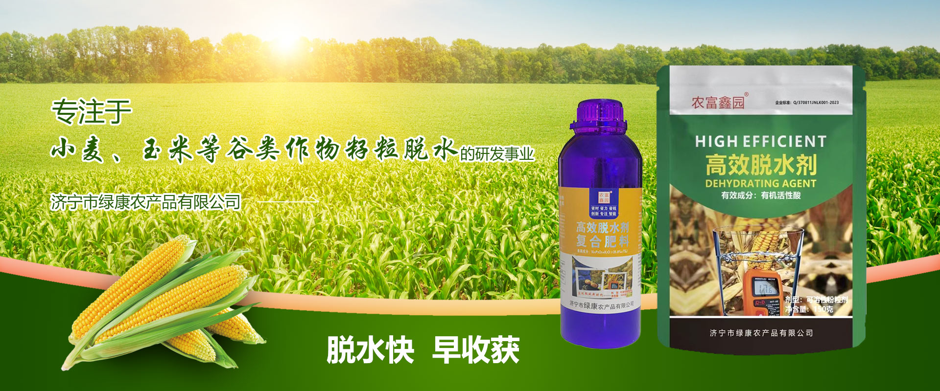 公司成立于2016年,坐落于歷史悠久的孔孟之鄉,運河之都的文明城市濟寧,一直秉承著“全心全意為中國農業服務”為宗旨,解決糧食收獲時水分含量大、不易存儲的問題,綠康農業專注于“小麥、玉米等谷類作物籽粒脫水”的研發事業,2020年和山東農業大學達成戰略合作關系,針對玉米脫水劑一項發明專利進行全國運營,為中國糧食作物的減少烘干、減少晾曬、節能減碳、提質增效的新型技術發明,解決中國農民30年來玉米的貪青晚熟、積溫不夠問題而研究出來的新方法,提速農業4.0時代機械化生產,開啟籽粒收割新時代...